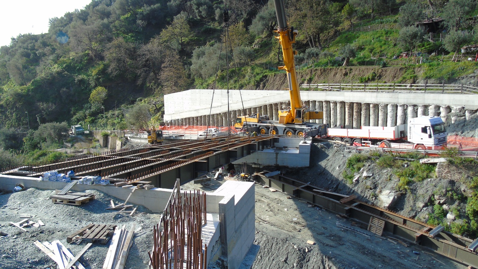 La ricostruzione del manufatto in attraversamento del Torrente Racinazzi, delle relative spalle e delle paratie poste in corrispondenza del ciglio della strada sia in sponda destra sia in sponda sinistra rappresenta un altro passo avanti degli interventi post alluvione dell'ottobre 2009. La struttura del ponte è costituita da un impalcato a struttura mista acciaio e calcestruzzo.