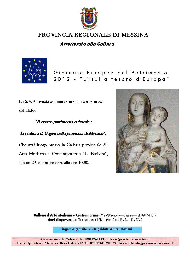 Conferenza sul tema "Il nostro patrimonio culturale : la scultura del Gagini nella provincia di Messina" Locandina