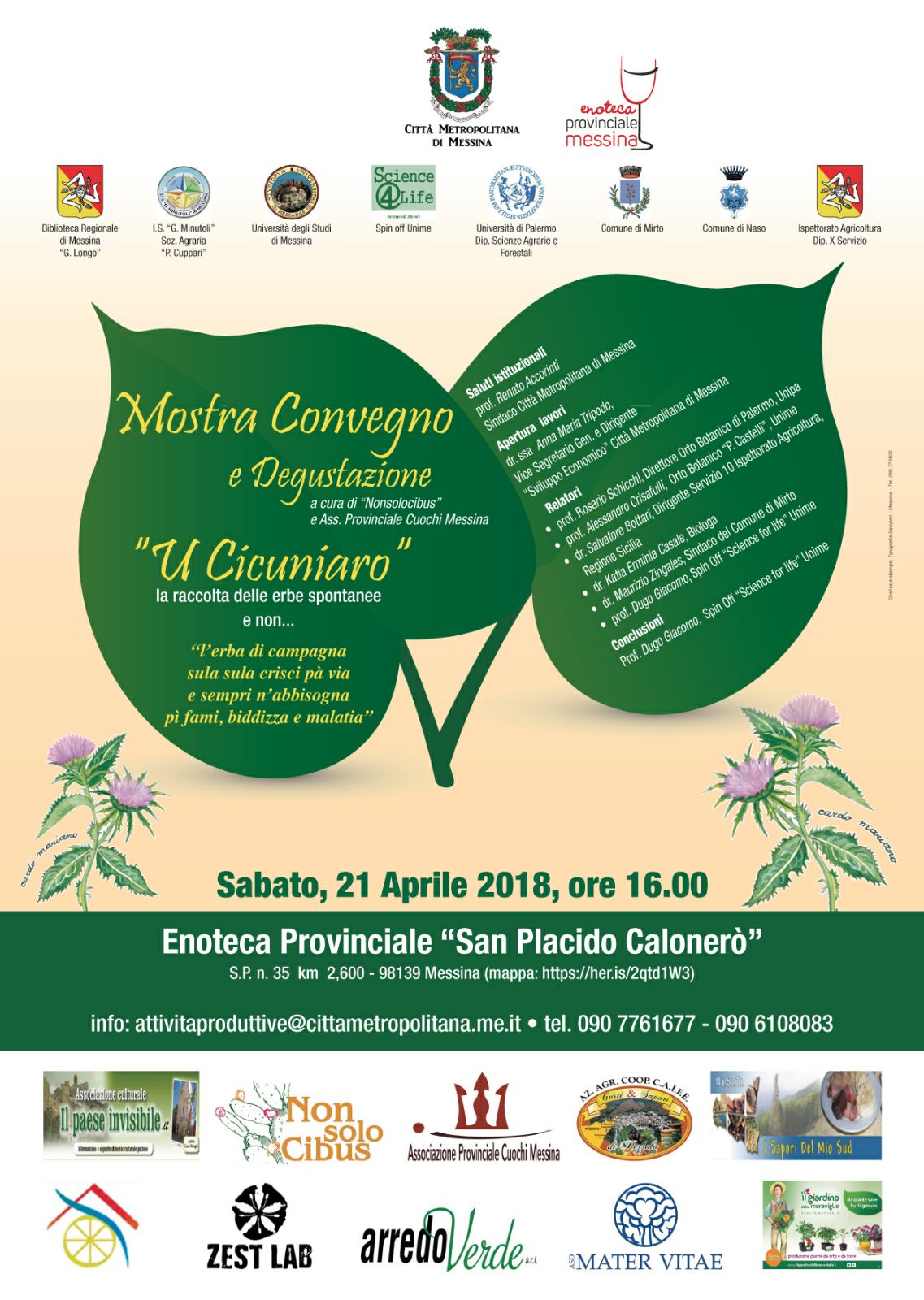 Sabato 21 aprile 2018, alle ore 16.00 presso l’Enoteca Provinciale “San Placido Calonerò” si svolgerà la mostra convegno "U cicuniaru” La raccolta delle erbe spontanee e non…