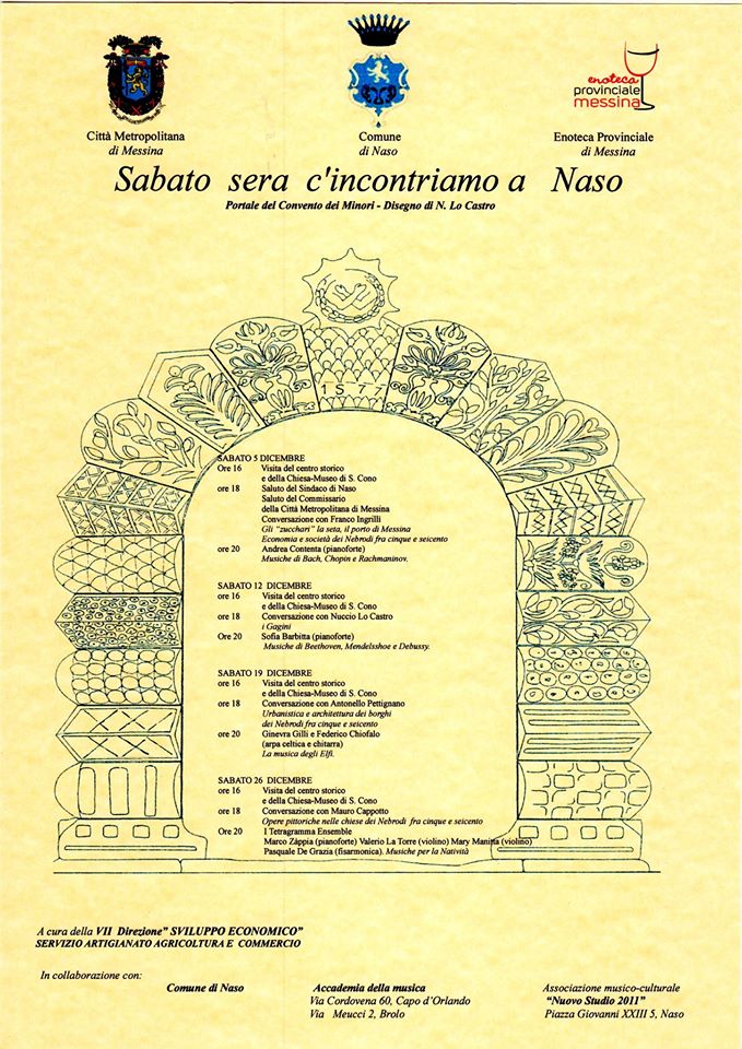 In occasione dell’apertura della sede staccata dell’Enoteca provinciale nel Comune di Naso, ospitata in un edificio storico costruito nel XV secolo come ospedale dei Bianchi e ristrutturato nell’800 in stile neogotico, è stato ufficializzato il programma di appuntamenti che arricchiranno gli eventi del centro collinare nel mese di dicembre.