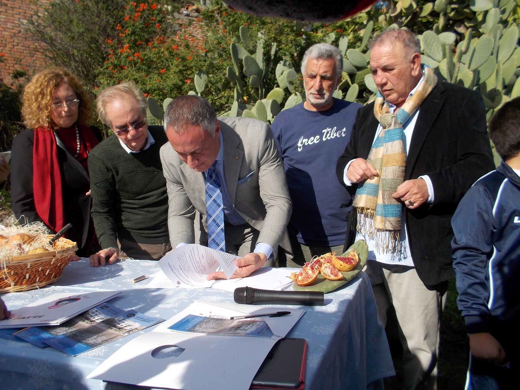 Per sottolineare anche aspetti, più emozionali che istituzionali, Antonio Presti, ha voluto la presenza di un gruppo di giovani alunni della Scuola Primaria. di Castelmola che, al termine della cerimonia, hanno sistemato ai piedi di due alberelli, piantati per l’occasione, alcuni melograni e liberato tre piccole tartarughe. Il melograno simboleggia la prosperità e la tartaruga la longevità, rimandano entrambi all’augurio conclusivo del mecenate Antonio Presti di fare delle Rocce” un “luogo simbolo, punto di riferimento e di rigenerazione”.