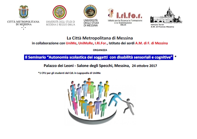 Parteciperanno Relatori universitari di elevato livello (UniMe e UniMoRe) e del mondo Associativo I.Ri.Fo.R (Istituto Nazionale di Ricerca, Formazione e Riabilitazione per la disabilità visiva) e A.R.I.S. (Associazione Religiosa Istituti Sociosanitari) con il sostegno dell’Istituto per Sordi “Annibale Maria di Francia” che presenteranno relazioni sulle criticità legate ai profili clinici dell’utenza (disabilità sensoriali, autismi, DSA) e dei bisogni formativi del personale educativo addetto, proponendo un percorso formativo ad hoc con il master di I livello bandito nel corrente anno accademico da UniMoRe “Formazione per Assistente alla comunicazione e per l’autonomia personale degli alunni con disabilità”.